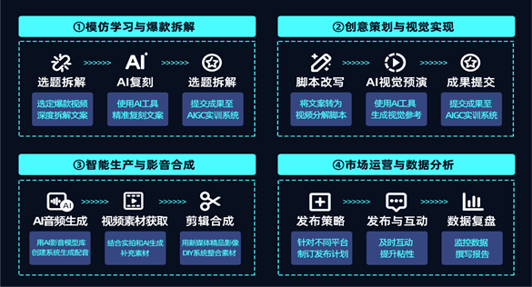 1.貫通“策劃-生成-剪輯-推廣-運(yùn)營”全流程實(shí)戰(zhàn)能力;