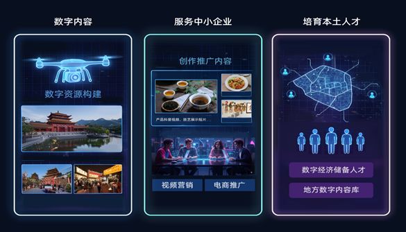 1.為本地文旅、非遺、物產(chǎn)提供數(shù)字資源構(gòu)建、虛擬數(shù)字人等數(shù)字內(nèi)容解決方案;
