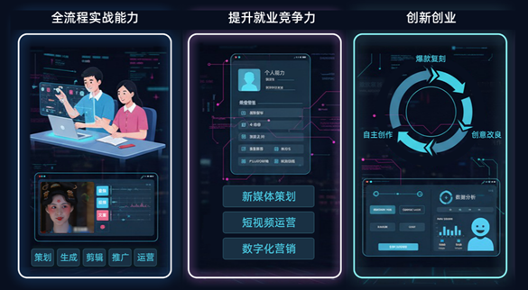 2.對(duì)接新媒體策劃、短視頻運(yùn)營、數(shù)字化營銷等崗位需求,強(qiáng)化就業(yè)競(jìng)爭(zhēng)力;